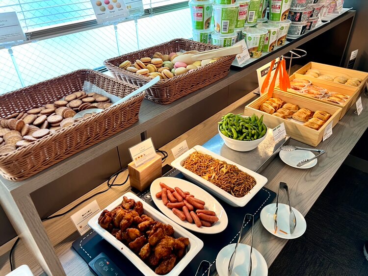 ビジネスクラス級のラウンジで、食べ放題・飲み放題。空港での待ち時間が快適になります。
